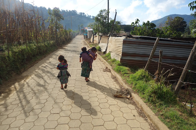 This week Eulalia and I went to a pueblo near Antigua for lunch at her daughter Sara's house. She served us big bowls of soup, with chicken legs, peppers and wiskil. Wiskil is a vegetable that we eat at most meals and I don't think we have it in the states. It tastes sort of like squash, is green and spiky, and very tasty. One of Eulalia's grand daughters is having her first baby in March, and I listened for the baby's heart beat and felt for the head, both are getting easier for me to find. While waiting for the bus I took a picture of this pick-up truck carrying three caskets--everything compliments everything else in the Guatemalan color palette.